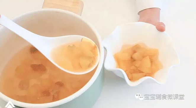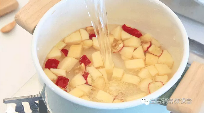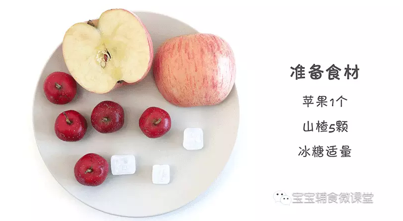 2:一个苹果搭配3-5颗山楂的口味,宝宝比较容易接受,山楂过多就会太酸,建议由少到多的方式添加。