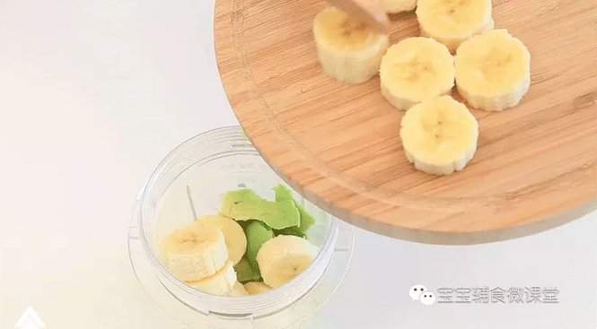 step3:香蕉和牛油果一起放入辅食机。