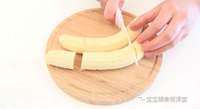 step2:香蕉去皮,头尾不用,只取中间,切成小块。