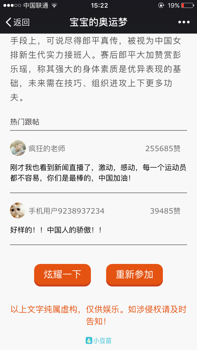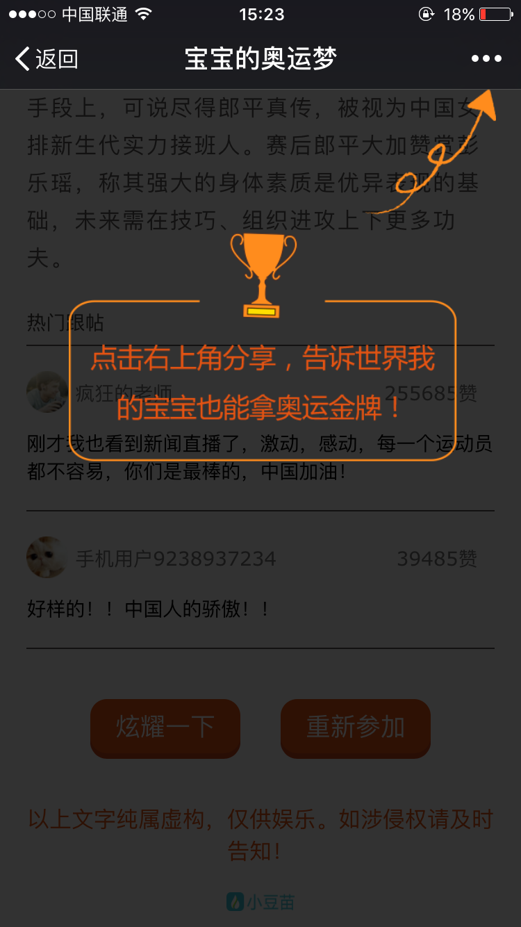 获奖后别忘了点击炫耀一下,我们不炫富,只炫奥运金牌!