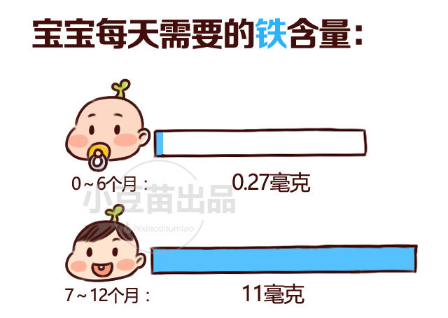 宝宝出生后4~6个月内对铁的需求量低,不会出现缺铁现象。